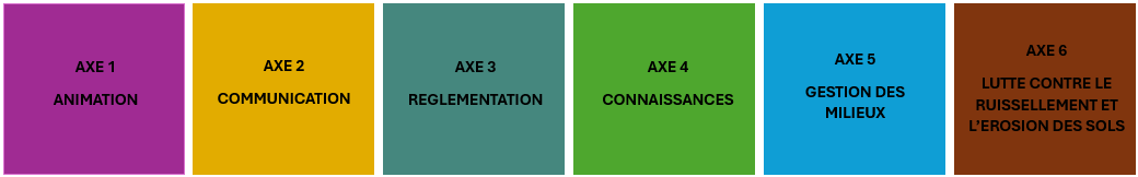 La stratégie, appelée STRAGEMA Lys, a été validée par l’ensemble des partenaires du territoire en mars 2025. Elle regroupe actuellement 77 fiches actions, réparties en 6 axes, qui sont les suivants :